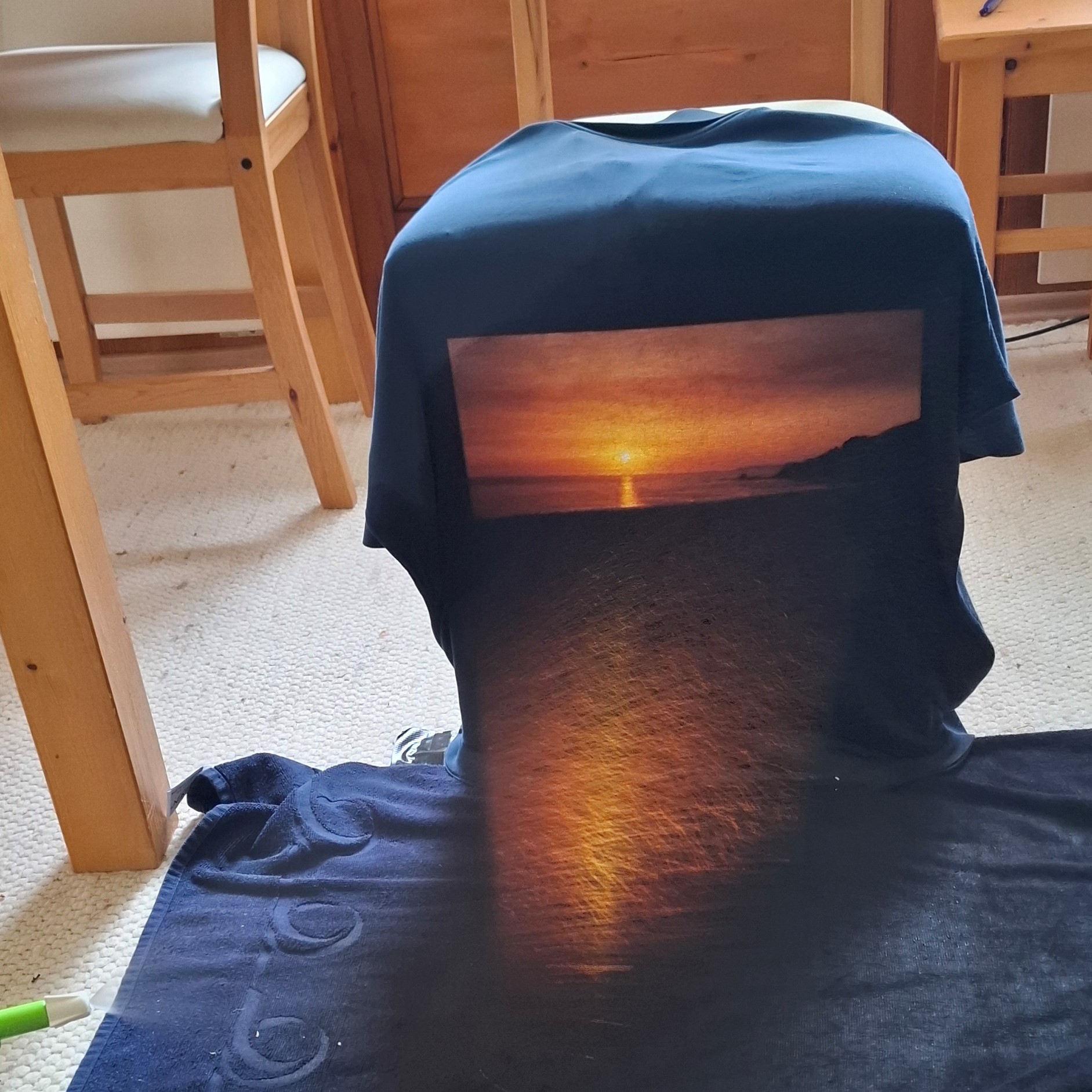 Die Farben das Bogens sind so gesehen nicht Resultat der Brechung und Reflexion in den einzelnen Tropfen, sondern alle Tropfen zusammen bilden eine große semipermeable Reflexionsebene, auf der sich die Sonne mit ihren leuchtend zarten Randerscheinungen spiegelt. Dahinter liegt die Tiefe des Regenkörpers. Das ist die gleiche Situation, wodurch auch Fensterscheiben, deren Rückraum dunkel ist, zu Spiegeln werden.
